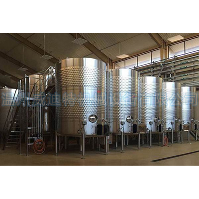 果酒發(fā)酵罐的結構特點:采用鏡面板套進行冷卻,通過溫度控制探頭,液位控制探頭,制冷劑電磁閥,罐體計算機系統(tǒng)設置,根據發(fā)酵罐的容量不同而不同。設計冷卻區(qū)實現(xiàn)了發(fā)酵過程的自動溫度控制,以快速,高效地完成罐中培養(yǎng)基的冷卻和控制。