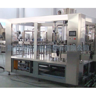 本機(jī)集沖瓶、灌裝、旋蓋三位一體,PLC自動控制。經(jīng)過預(yù)處理的PET空瓶,通過無菌水沖洗后自動進(jìn)入灌裝封口工序。
